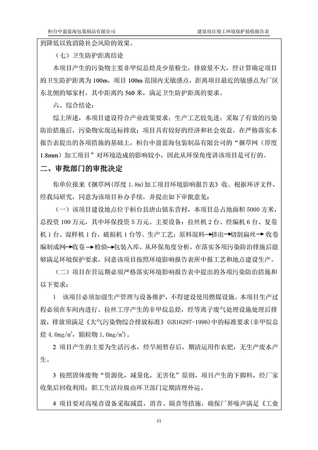 桓台中盈蓝海包装制品有限项目验收检测报告表3